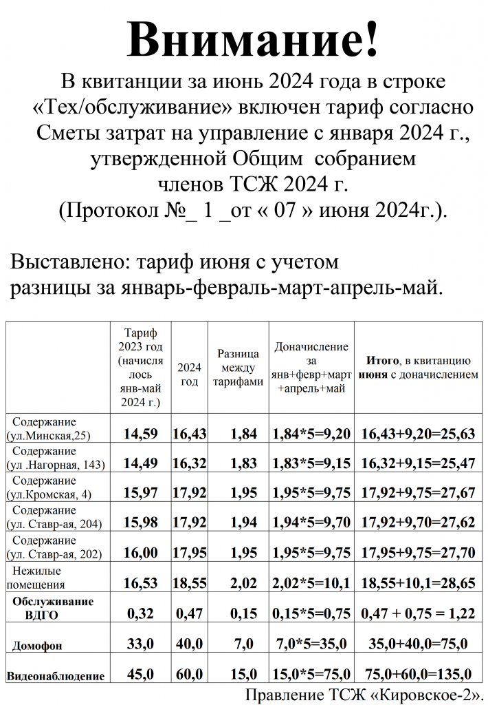 - проведение общего собрания членов ТСЖ «Кировское-2» (отчетного за 2023 г.), проводимого в форме очно - заочного голосования предложено провести в период с «22» апреля 2024 г. по «28» мая 2024 г., с составлением бланков Решения члена ТСЖ.
